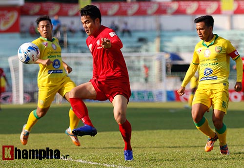 Đội trưởng Minh Lợi của CLB Đồng Tháp (bìa phải) không được đăng ký ở 2 trận đấu gần nhất